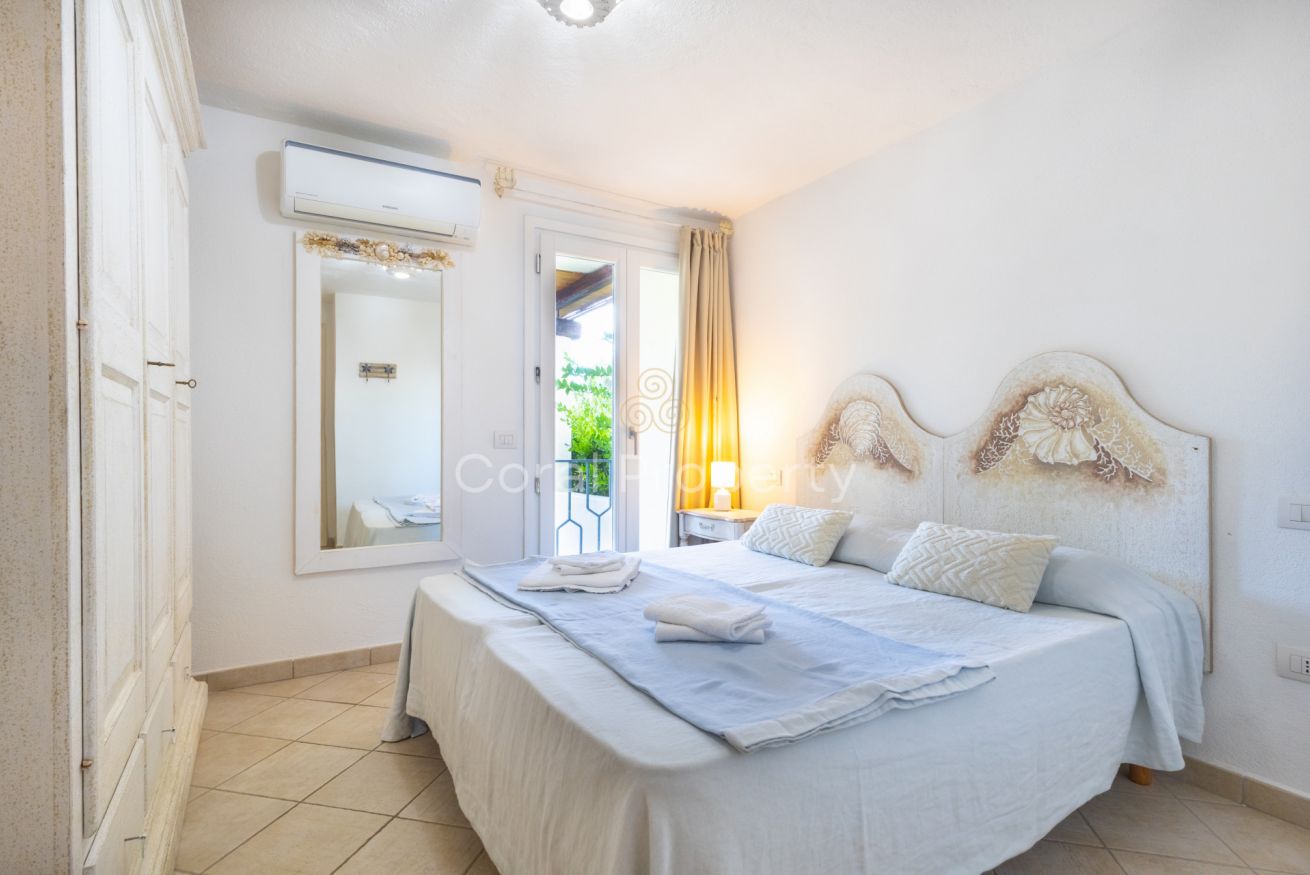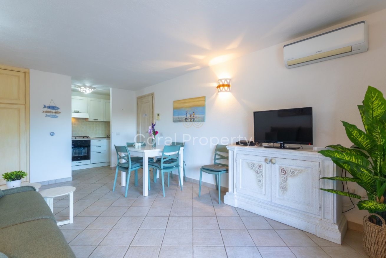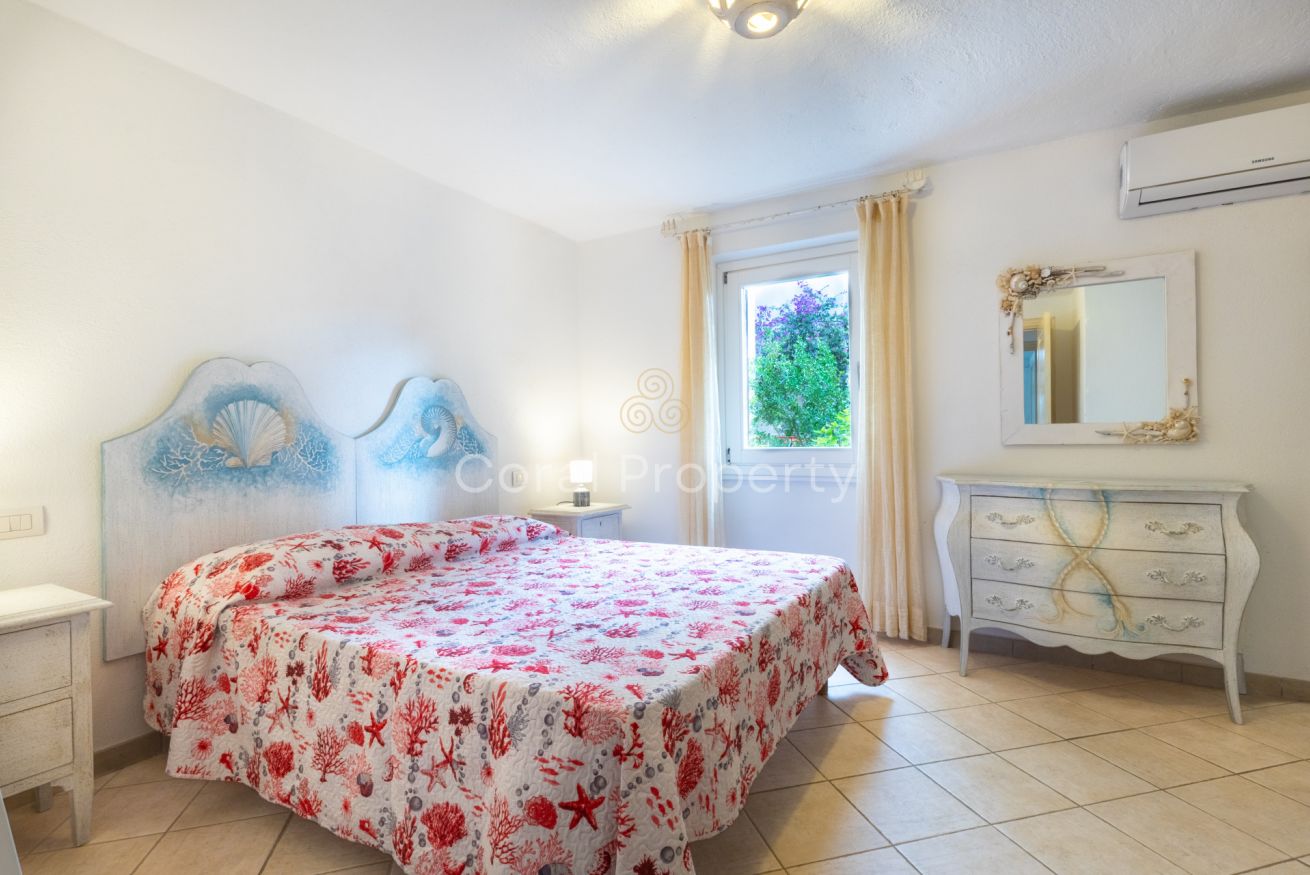 un ampio e luminoso trilocale al piano terra situato nel centro di Baja Sardinia a soli 200 metri dalla spiaggia di Cala Battistoni.