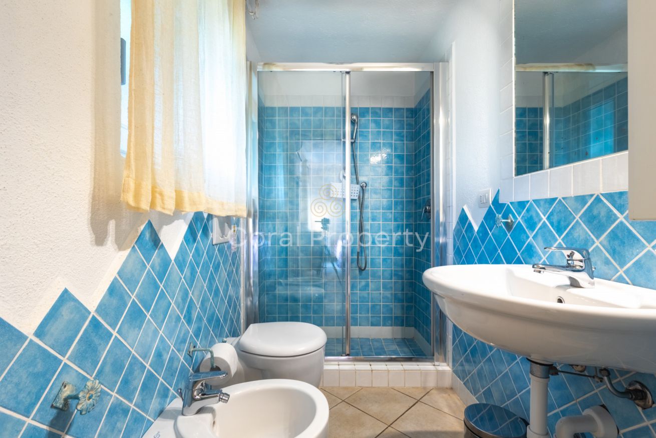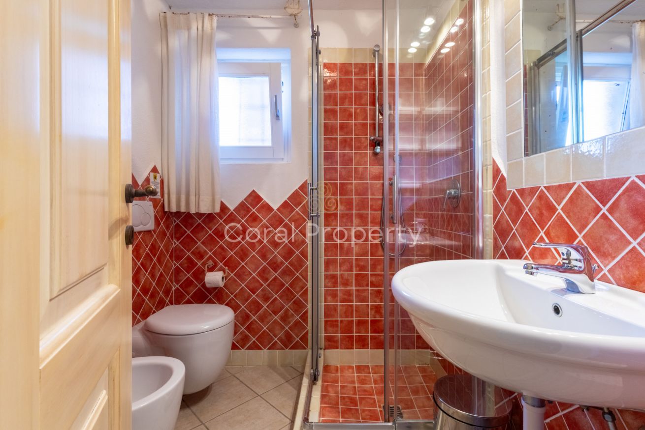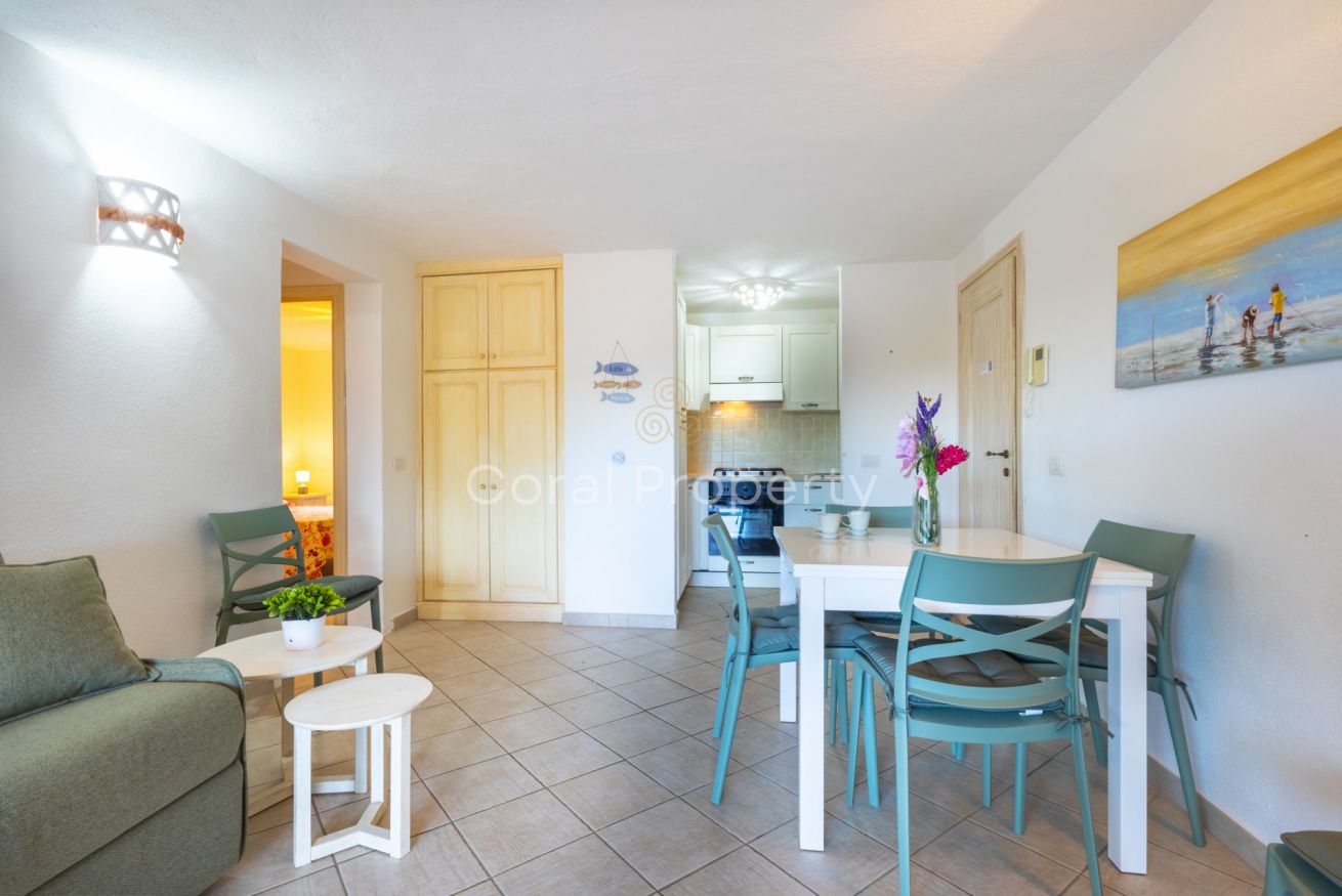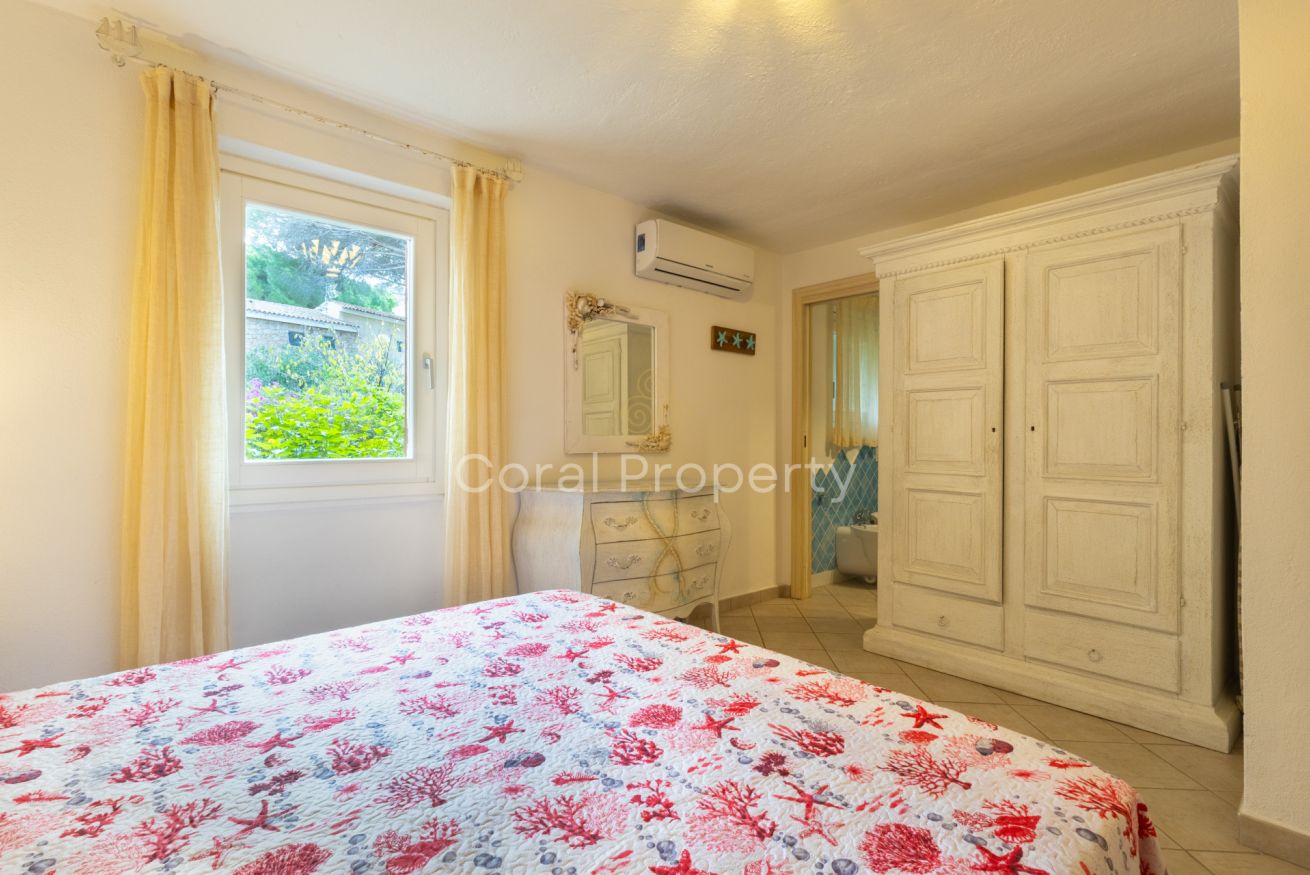 un ampio e luminoso trilocale al piano terra situato nel centro di Baja Sardinia a soli 200 metri dalla spiaggia di Cala Battistoni.