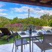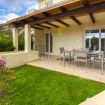 Area Esterna Privata: Giardino privato con sdraio prendisole e veranda coperta attrezzata con tavolo da pranzo.