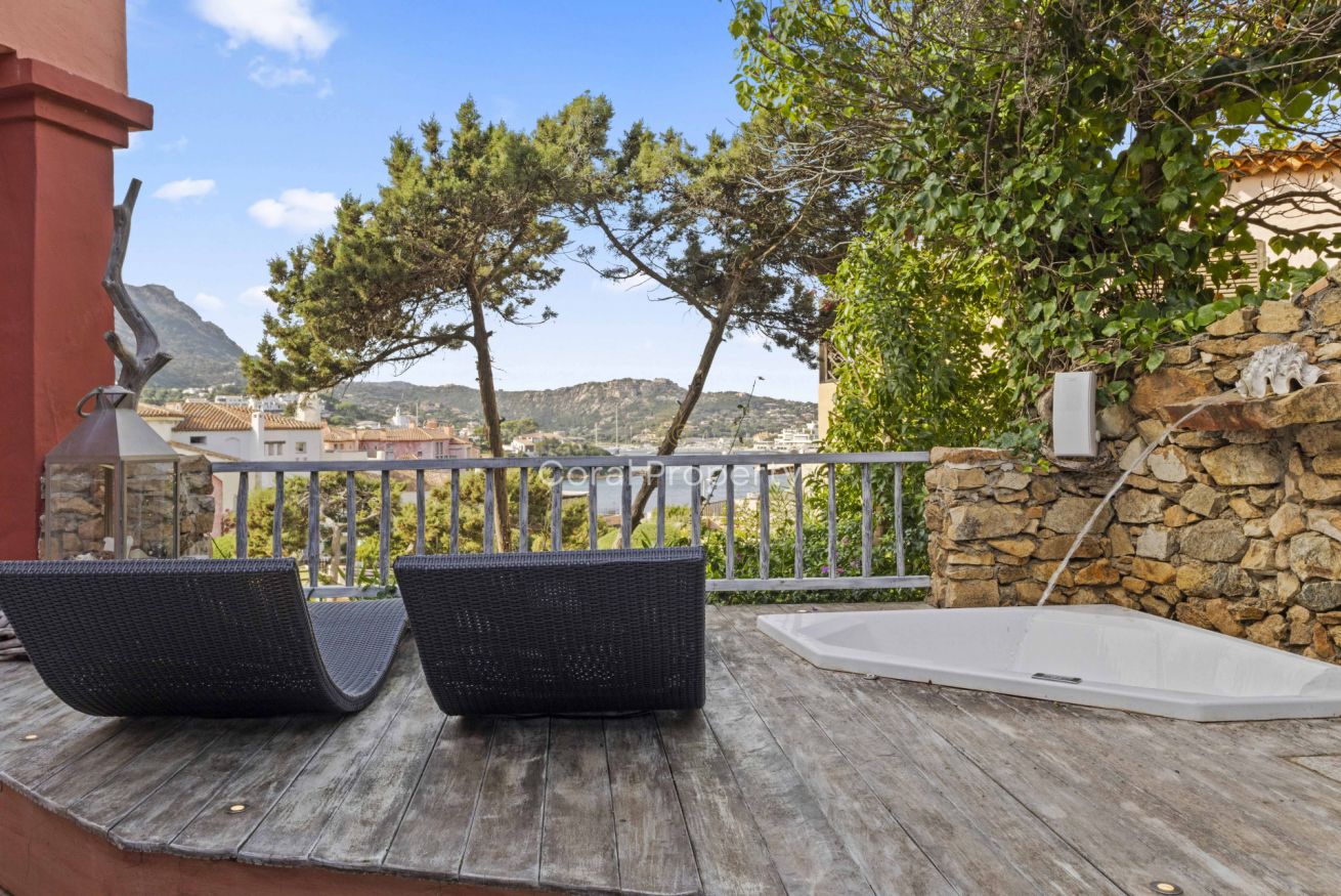 Wellness: Vasca idromassaggio privata con vista mozzafiato sul porto e zona solarium.