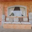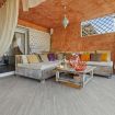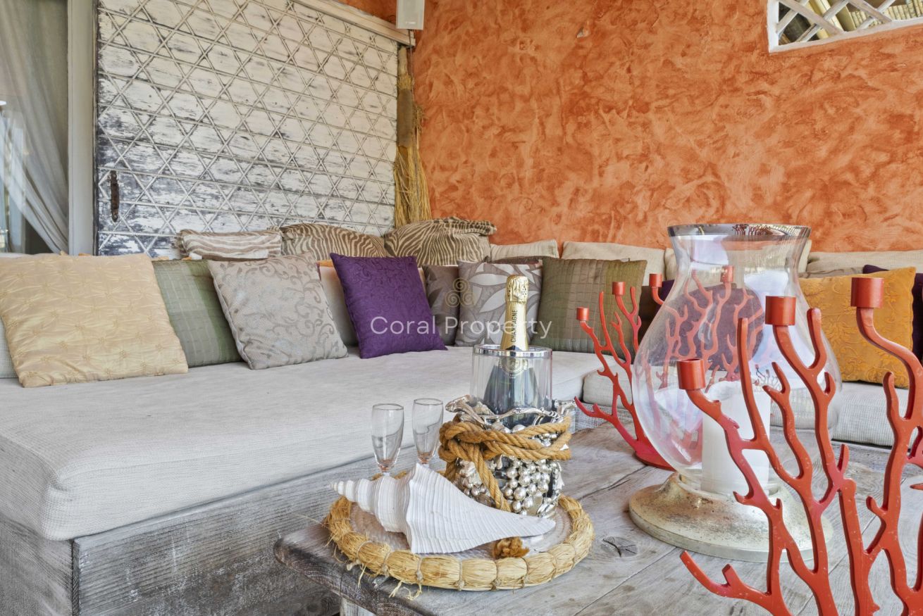 Lounge Area: Una splendida zona living esterna riparata, arredata con divani e tavolino, ideale per colazioni, aperitivi e momenti di puro relax ammirando il tramonto sugli yacht.